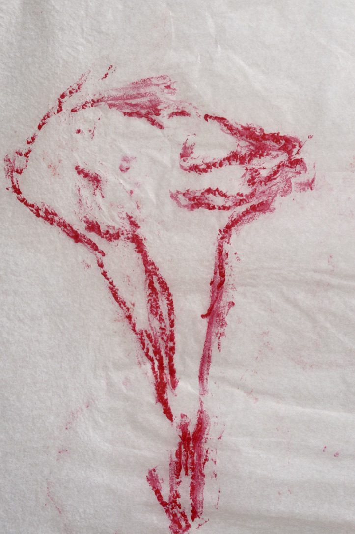 Pélagie Gbaguidi, The impossible Drawing , A tribute, 2016. 80 panels roll drawings 30cm x 400cm. Lipstick, earth from Nirox karite and color pencil (drawings from archive Apartheid Museum Johanesburg/ Baileys African History Archive Johannesburg/ Nirox Foundation caves and bones 2016) Photo by and courtesy of the artist.