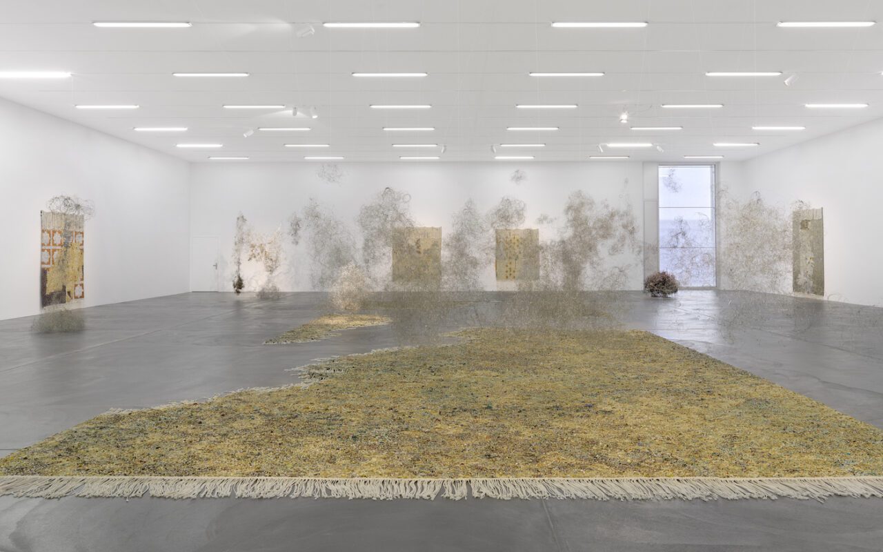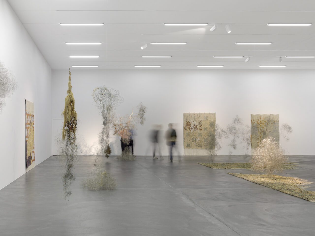 Igshaan Adams’ art speaks of origin, religion and sexuality and it connects the proximate, the distant and the seemingly contradictory. Woven tapestries, filigree sculptures and expansive structures bridge opposites. They spin threads, hold and weave together ideas. His art is abstract, poetic and at the same time grounded in lived experience. It absorbs visitors yet leaves space and calm for reflection. The exhibition Kicking Dust is reminiscent of a garden or a park crisscrossed by visible and invisible paths, wishes and memories.