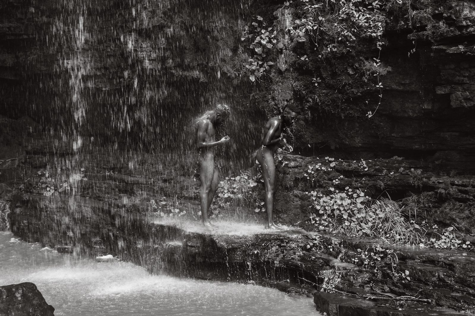 Eric Gyamfi, Kwasi and Annertey find the Akaa Falls. Kwasi, looking to start a magazine on Ghanaian tourism, explores the eastern regional landscape of Ghana with his friend, Annertey, for new places to feature in the debut issue of his magazine. Kwasi identifies as a gay man, Annertey as a straight man. From the series Just Like Us, 2016. Courtesy the artist