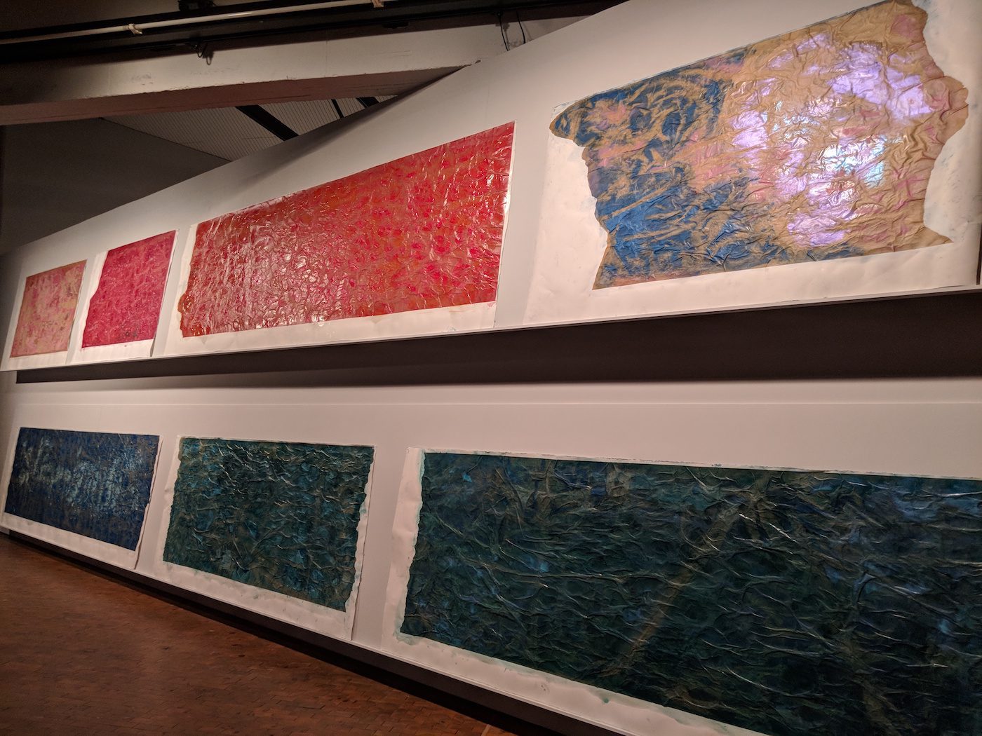 Herman Mbamba, The blue mandane series 1-5, 2017-2018; Wait for me in the lirking landscape, 2017-2018; Until the wind blows for another time, 2017-2018. Photo: C&