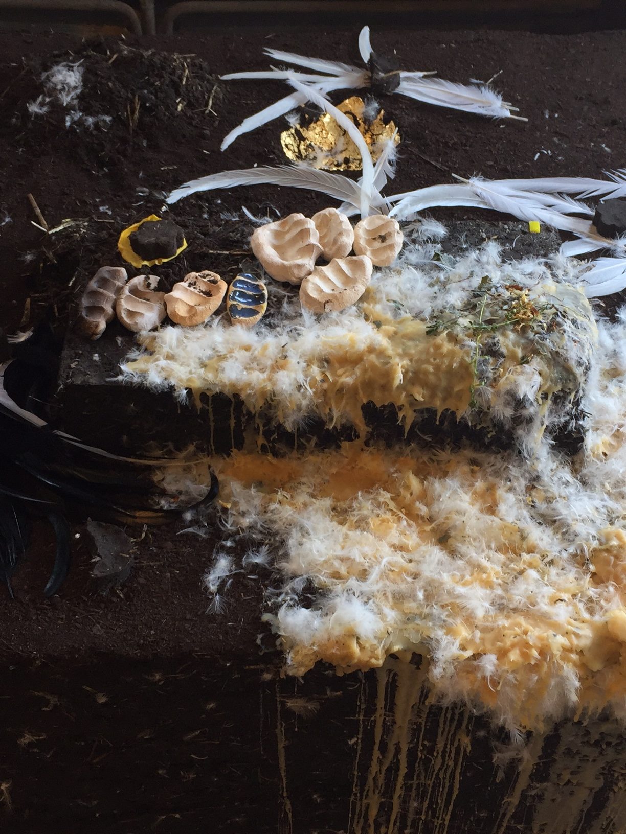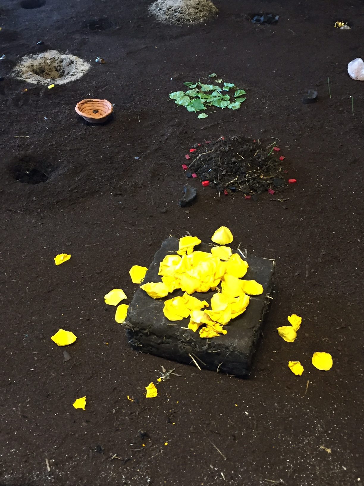 Dineo Seshee Bopape. mabu/mubu/mmu, 2017. Local soil, cermaics, herbs, crystals, coal, ash, adobe bricks. Produced by PinchukArtCentre. Image © Contemporary And