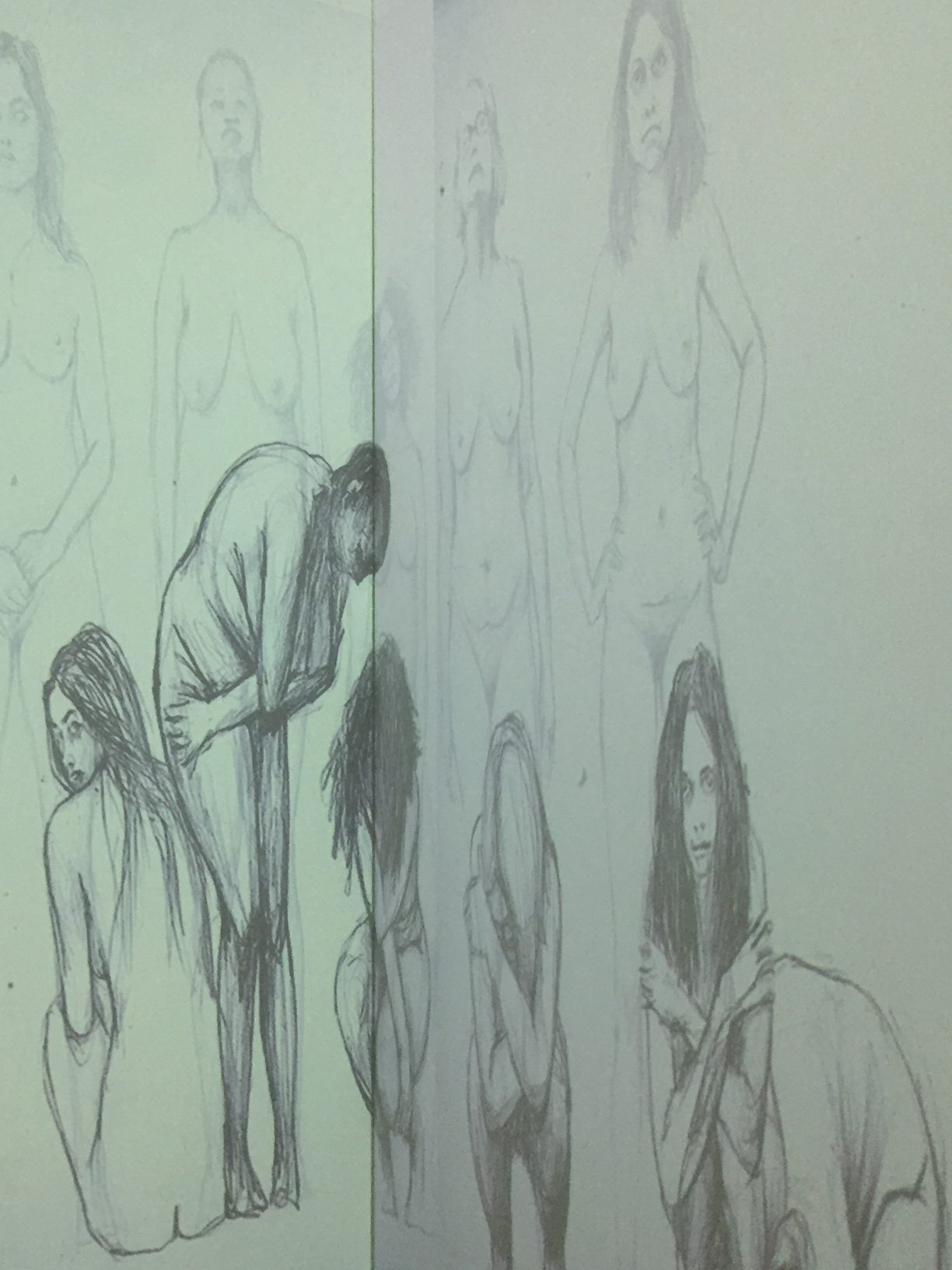 Kemang Wa Lehulere, Another Homeless Song (für RRR Dhlomo) 2, 2015, Slavaged school desks (steel), gumboots, clay heads, paint © Contemporary And