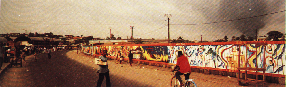 doual’art pop 93, 152 meters of palisade, on the facade of the market in Madagascar. Works of five workshop masters (Koko Komegne, Joel Mpah Dooh, René Tchebetchou, Baby Kouo Eyango, Aimé Tallo) and 25 young people