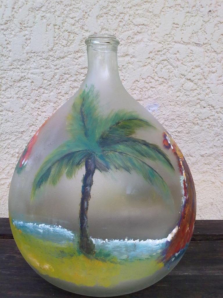 Illustrative image of painting on glass demijohns