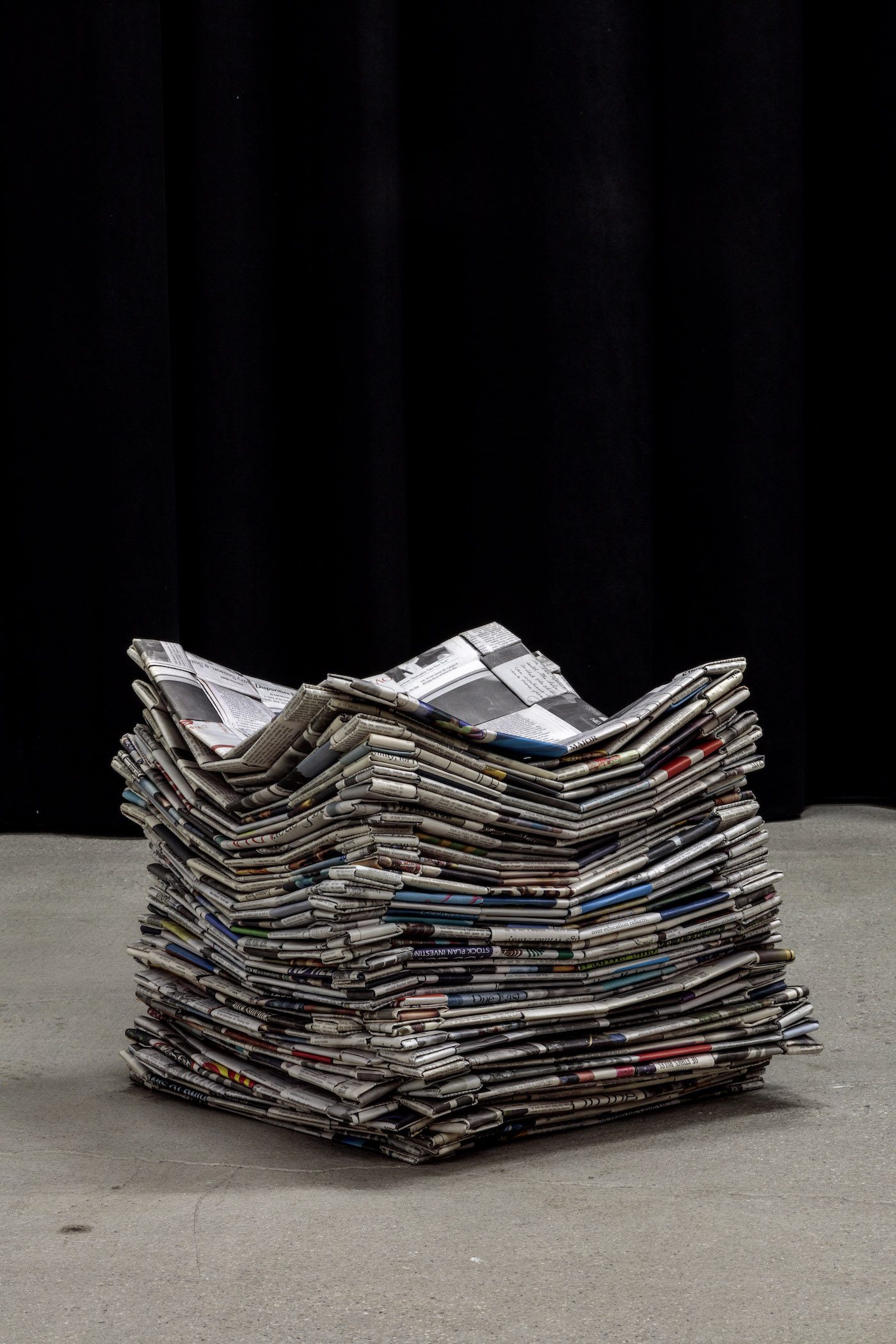 Maren Hassinger: I don’t think of newspaper as a decaying material. The Sit-Upons that I made exclusively from The New York Times have lasted a decade in the same condition as they were first made – no yellowing or browning, no fraying or disintegration. The world is increasingly commercial and digital for some, but it is also a world that includes less affluence and education. The reason I use The New York Times is because it’s the paper of record for the United States. It contains all of our stories, lives, tragedies, and joys! Using the newspapers brought me to a more compassionate conception of our world and I am forever grateful to those who toil to bring us these truths. I know it is our task to live together in equality to heal our world.