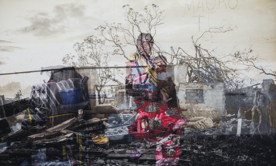 The Mozambican artist Mário Macilau combines in a single photograph portraits of families, often mother and child with surrounded abandoned places, especially buildings dating from the colonial era. Each photograph was taken with a single slow pause that allows him to aim the lens first at people and then at the scene.