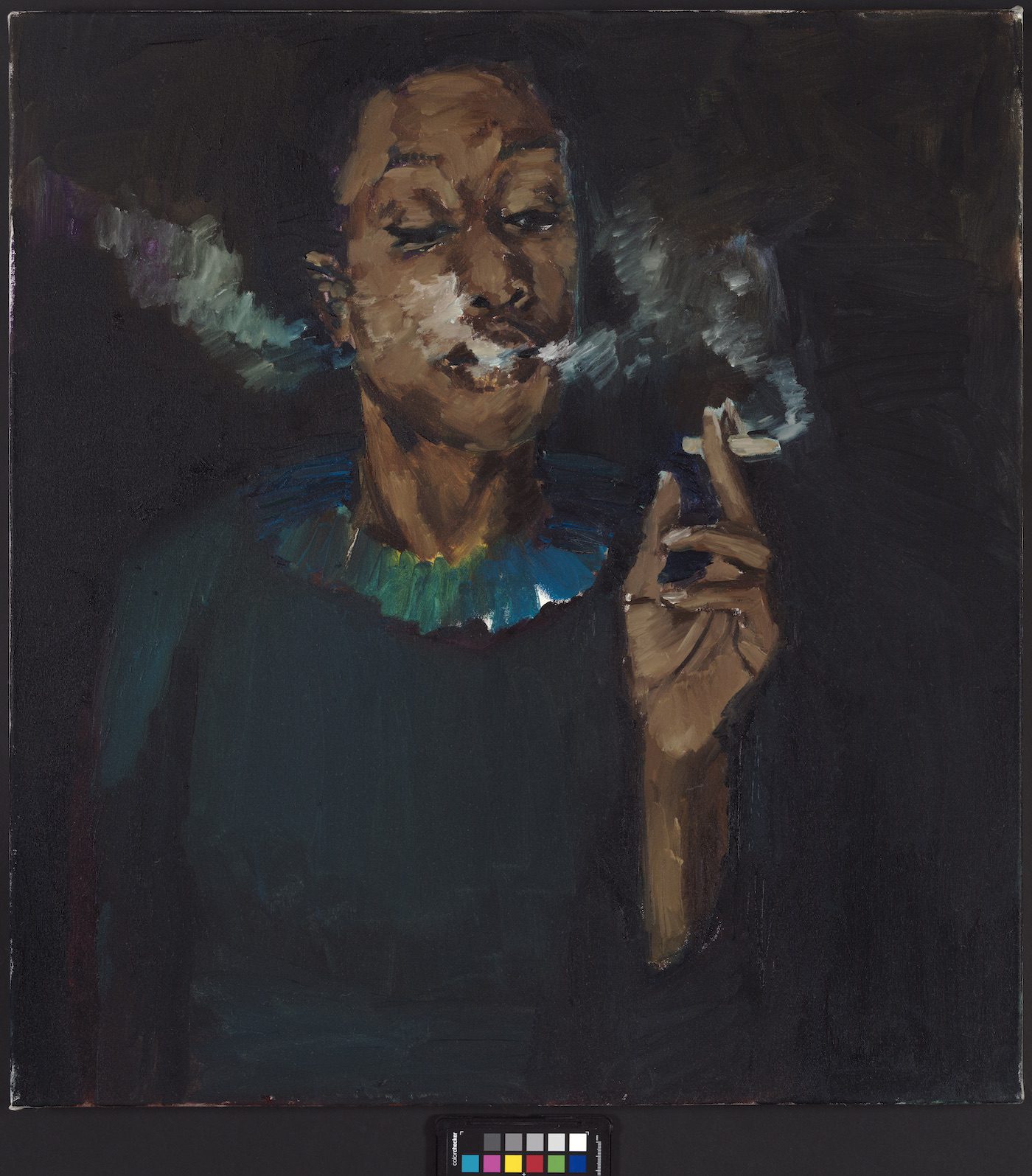 Lynette Yiadom-Boakye. A Whistle in a Wish. 2018. Oil on canvas, 75.5 × 70 cm. Courtesy the artist; Corvi-Mora, London; and Jack Shainman Gallery, New York.