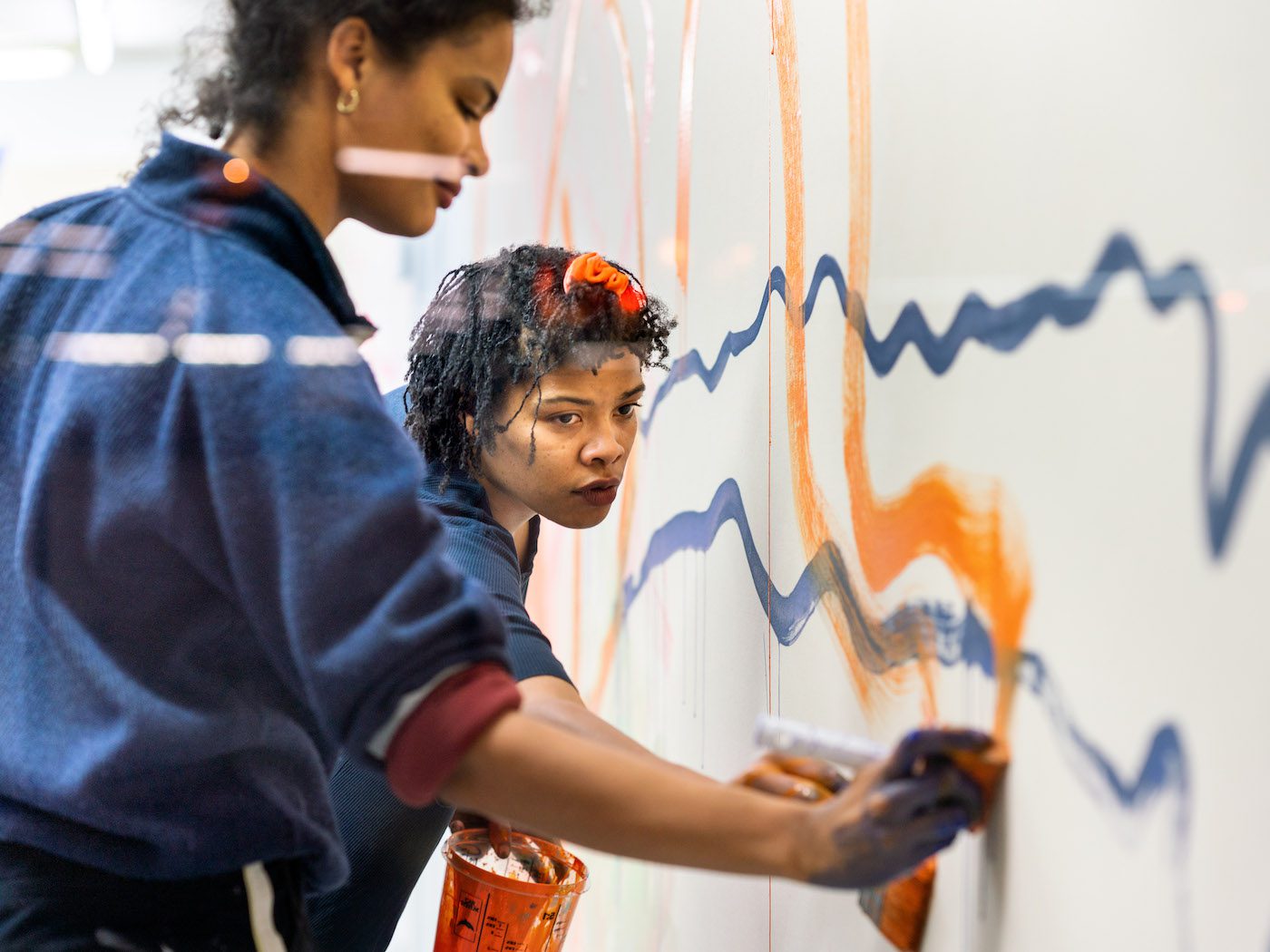 Depuis des siècles, les pays germanophones forment un espace où s’origine une riche production culturelle Noire, aussi hétéroclite que ces différentes régions. Dans cette série, nous présentons des artistes de générations diverses qui entretiennent des liens étroits avec ces territoires géoculturels. Noemi Weber est une artiste plasticienne, et sa sœur Milena travaille comme metteuse en scène et chorégraphe. Leur projet d’exposition SchwesterInnen est né de cette intersection. Avec Mearg Negusse de C&, elles discutent du corps comme un système de résonance, de la peinture gestuelle en tant que langage non verbal et du caractère processuel comme un espace partagé pour la production artistique.