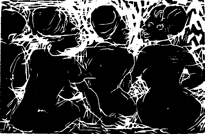 Settling in Lusaka, he took part in group exhibitions with the Lusaka Art Society (LAS). During this period, the late 1960s, works in the European settler-run LAS predominantly featured evocative landscapes, still lifes, and figurative genres. Tayali’s paintings, however, showed frenzied scenes of African social life in the city and townships, as well as people at bus stops, beer halls, and markets. These abstract representations of crowd scenes, just as the multitudes in Destiny, were political statements. This time the masses represented the silent majority – the electorate.