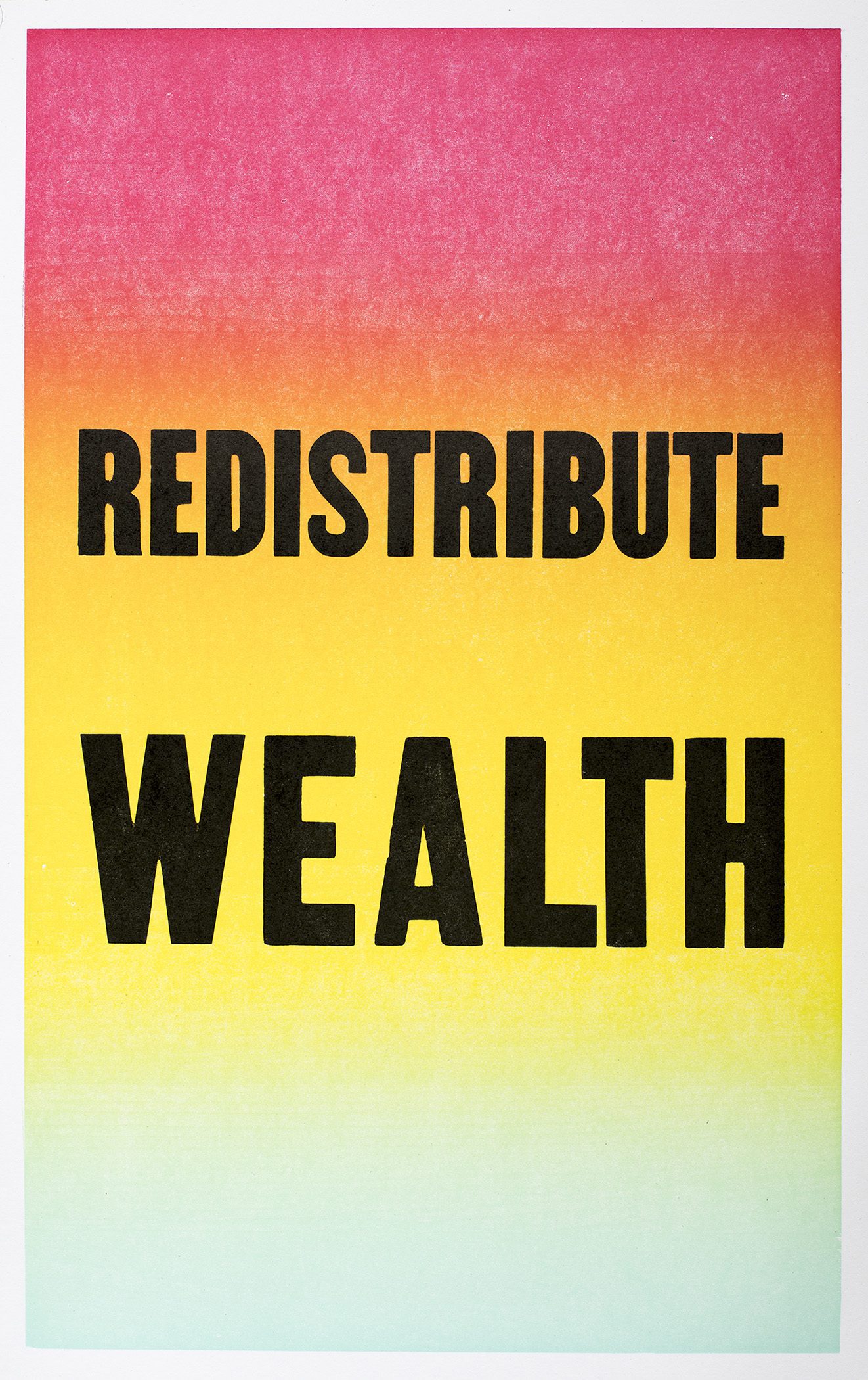 Dread Scott, Redistribute Wealth (Detail), 2018. 21 x 13 in, letterpress. Image courtesy of PRIZM Art Fair