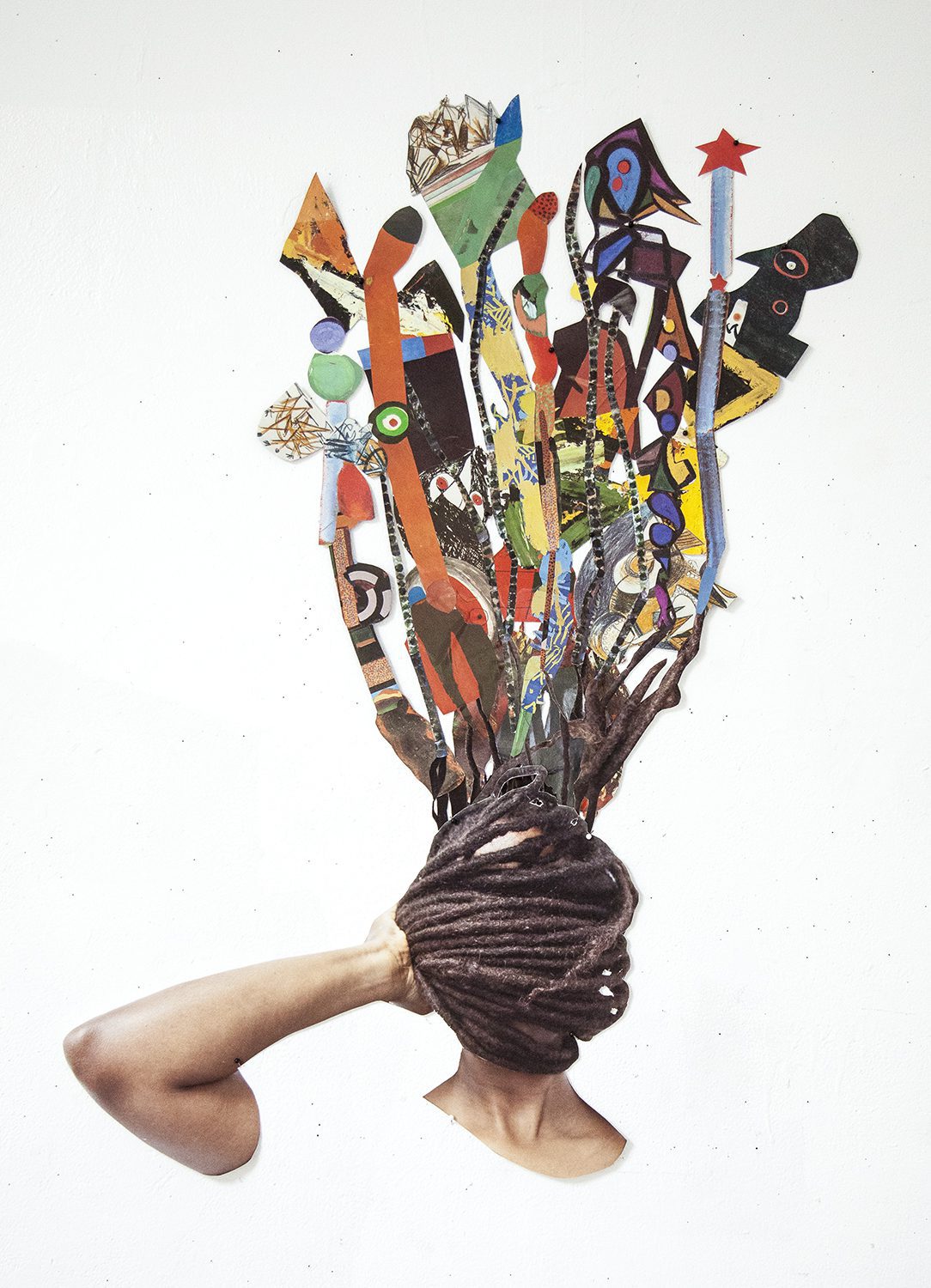 Helina Metaferia, Out of the roots of my head, 2018. Collaged paper 37 x 25 in. Image courtesy of PRIZM Art Fair