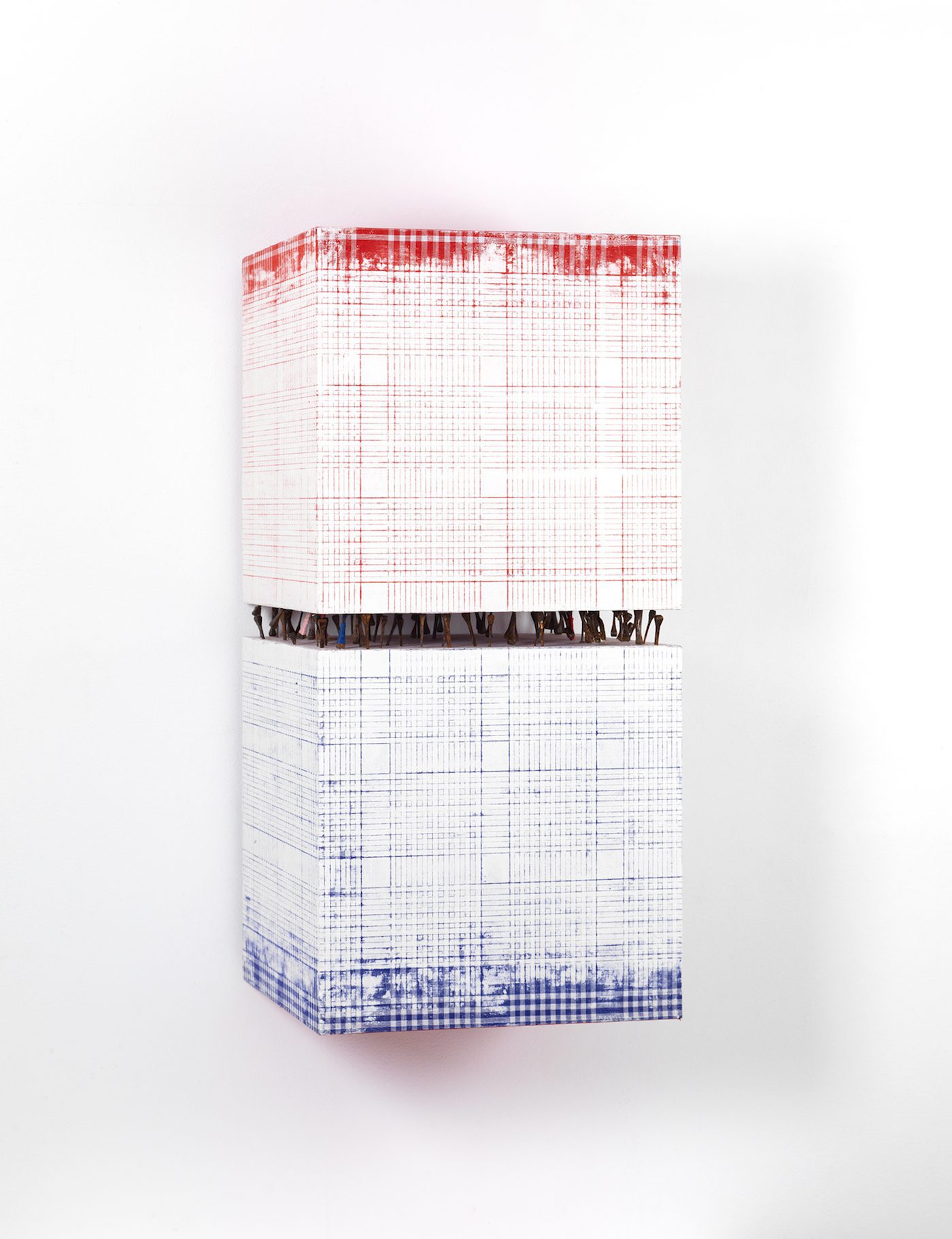 Remy Jungerman, NKISI PAKAMUTU, 2916. Cotton textile, MDF wood, nails, yarn, kaolin 15,7 x 16,5 x 33,5 inch (40 x 42 x 85 cm) photo© Aatjan renders. Courtesy the artist.