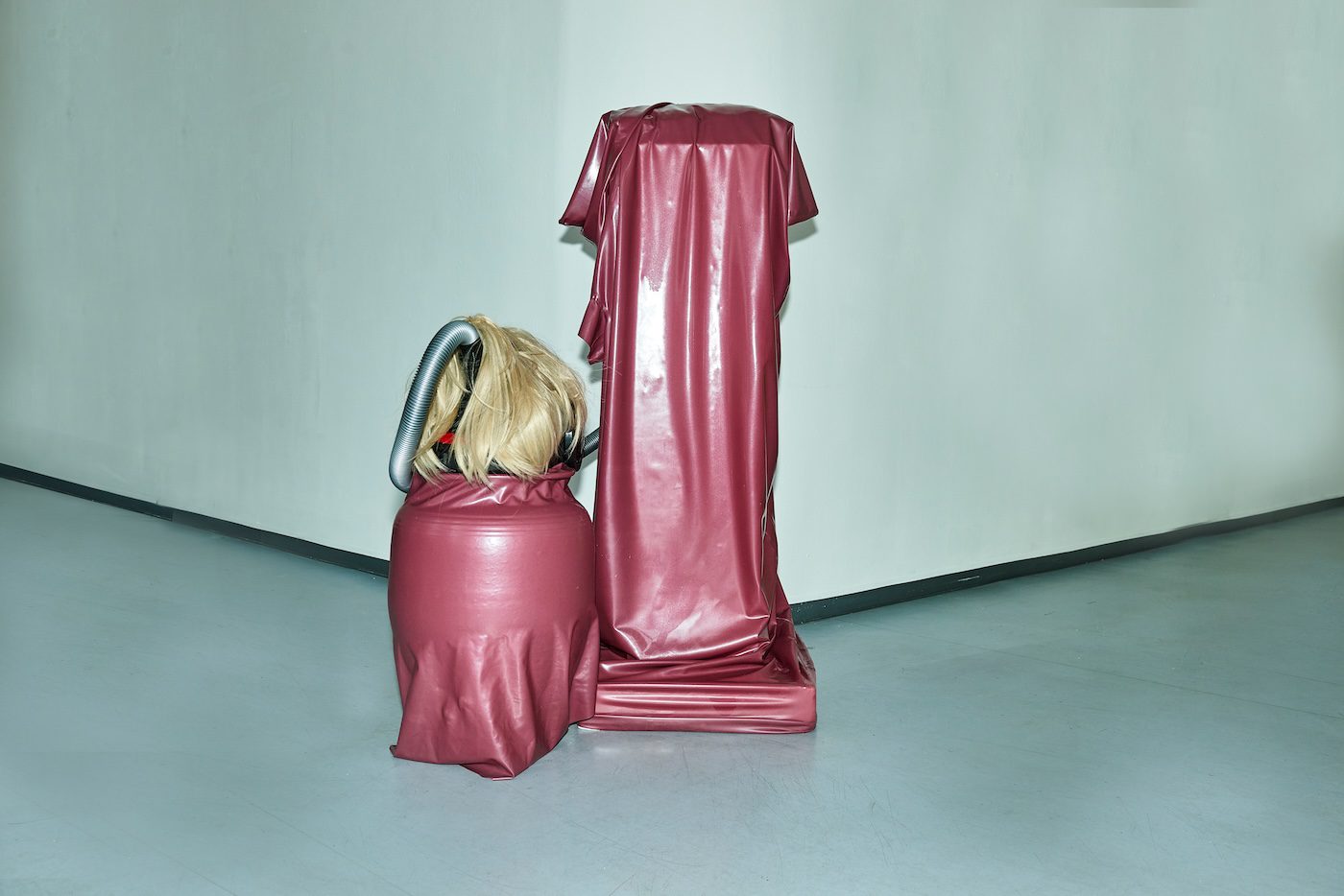 SAD: It was part of a two-person show titled Existing Otherwise with artist Ato Jackson. I exhibited my latex monuments without performers and used them as the base for my performances at the opening and closing. We performed during the evening vernissage for about an hour in the crowded gallery, while the finissage happened during daylight so people could pass by, walk in and out, and have more time to arrive.