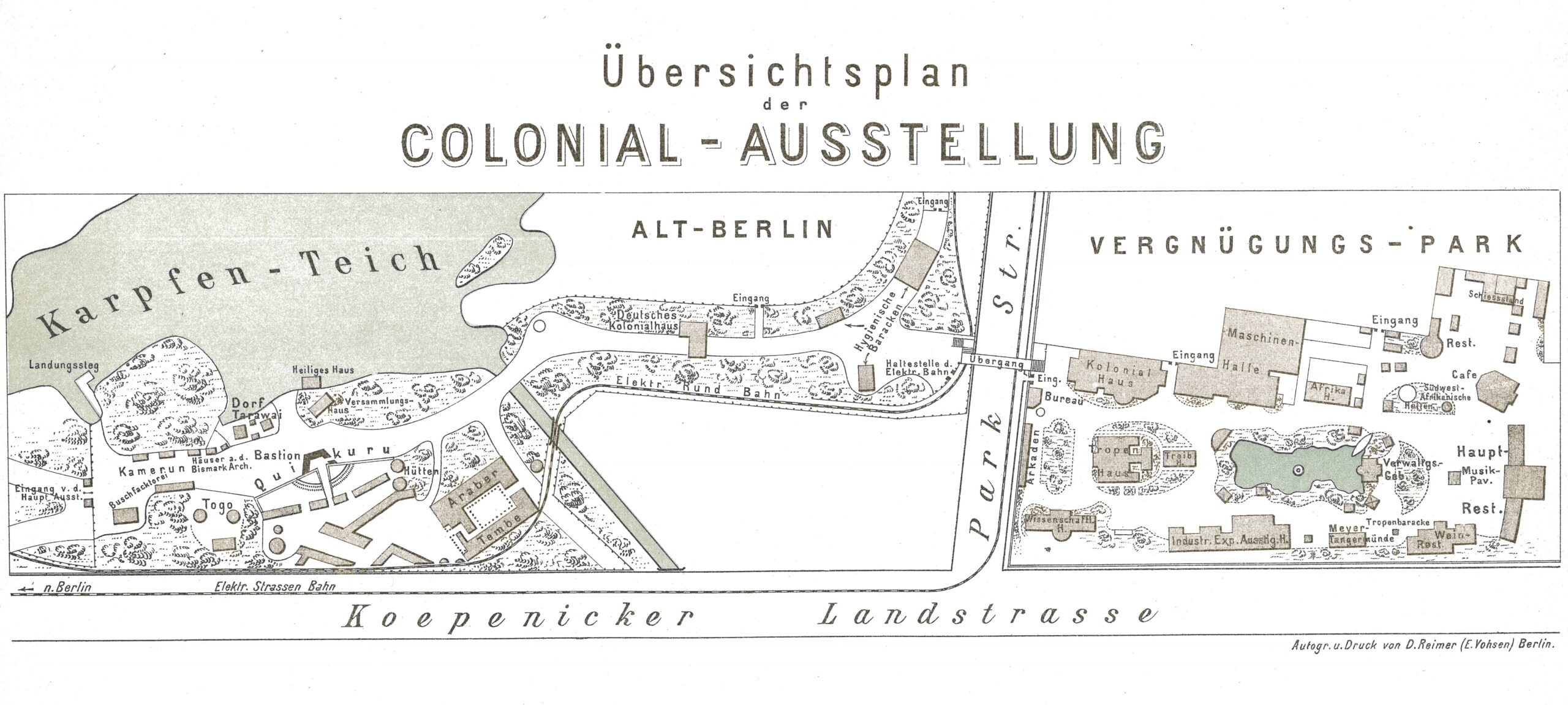 Overview plan of the “First German Colonial Exhibition”. Source: Working Committee of the German Colonial Exhibition: Germany and its Colonies in 1896. Official report on the First German Colonial Exhibition. Berlin, 1897.