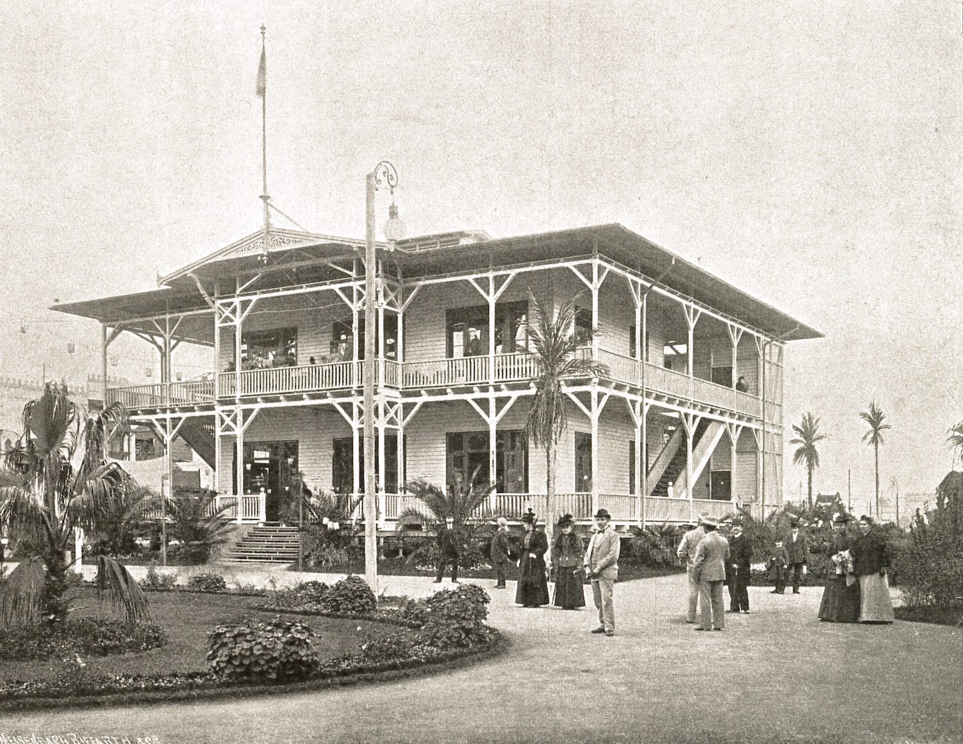 This picture shows the tropical house. In contrast to the other exhibition buildings, the tropical house was not a mere dummy, but a prefabricated house that was intended as the governor’s seat for Togo. The interior of the building was intended to give the exhibition visitor a “picture of the more intimate tropical life” of a colonial official. Source: Working Committee of the German Colonial Exhibition: Germany and its Colonies in 1896. Official report on the First German Colonial Exhibition. Berlin, 1897.