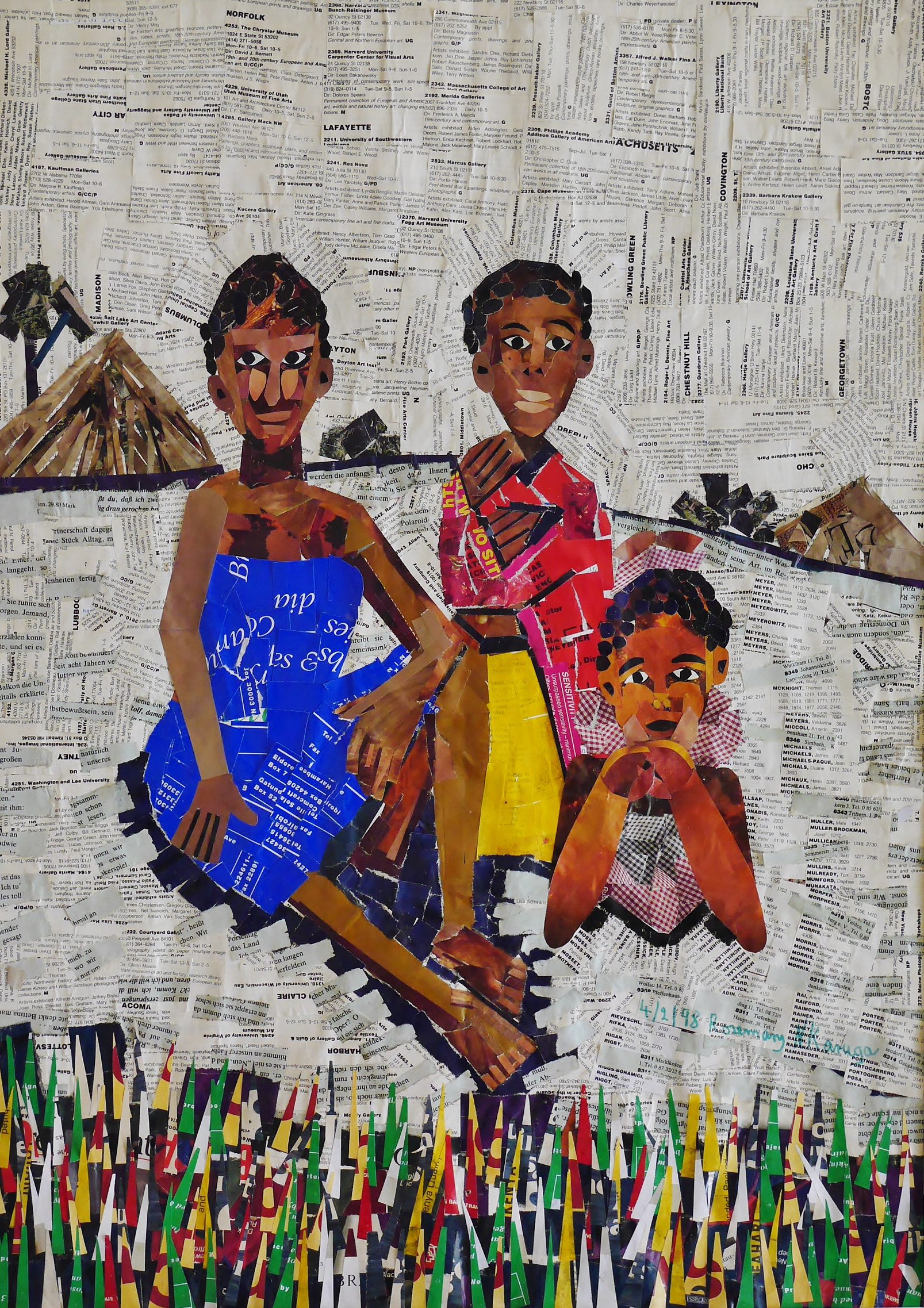 “Karuga is a significant link between the past and future of women artists in East Africa today. She is also a respected innovator who dared to branch out and break new ground with her art, hence paving new pathways for others. Using the easily accessible material of newspapers and magazines, Karuga has over the years developed an approach to collage that at the time was unique in East Africa. Her images harness both extraordinary detail and charming simplicity.”