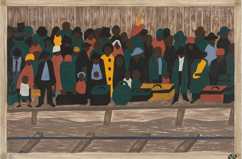 Jacob Lawrence portrayed the Great Migration in a 60-panel series, in which over six million African American fled from the rural south, caused by the poor economic conditions and the racial segregation to the industrial North.