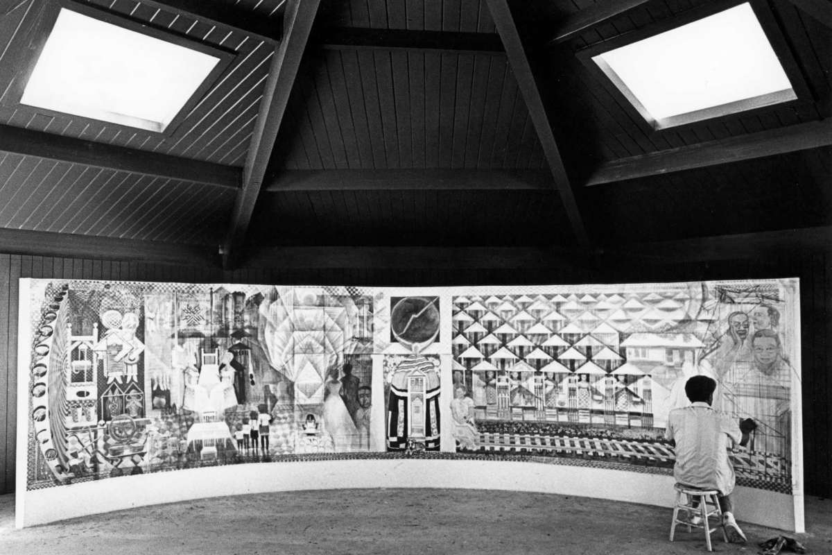 We don’t know how long it took John Biggers to create his impressive mural honoring the black civil activist and suffragist Christa V. Adair. But made in 1983, it is a detailed study of African-Amercian history and a critic of racial and economic injustice. Biggers is a pioneer in many ways. He was one of the first known African-American artists to travel to Africa and who incorporated African and African-American influences in his arts to tell stories that haven’t been told before with art.