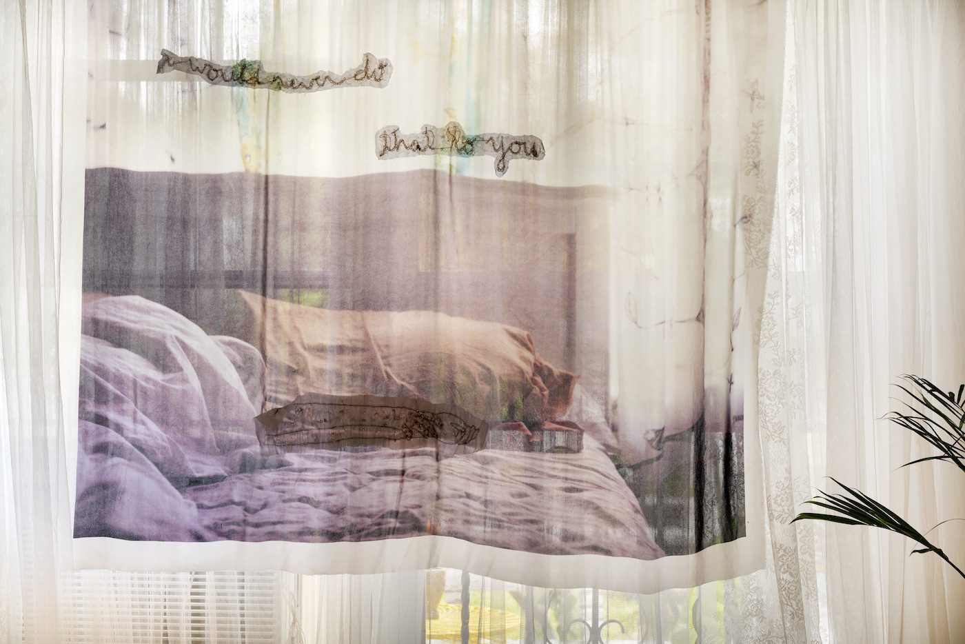Michelle Lisa Polissaint’s work considers a similar dichotomy within the home; in particular, how the space you share with a lover can become a prison once that flame has gone out. I would never do that to you, a photograph from the series The Ballad of Me and You, is a sensitive portrait of the longing that endures after a relationship ends. Next to a forlorn pillow, crumpled sheets seem to hold a human form underneath; peeking out the corner, Polissaint has used cotton thread to stitch two outstretched arms, their hands reaching for one another. The absence of her significant other seemingly leaves a gaping hole in their shared bed, but Polissaint unequivocally states that the series is meant to be optimistic. “I’m searching for light and joy in the reality of broken relationships and existing on my own,” she shares on her website. “Failed relationships are beautiful, complicated, and an important part of learning to float into successful partnerships. At the end, they are all some kind of success.”
