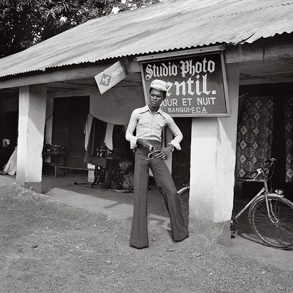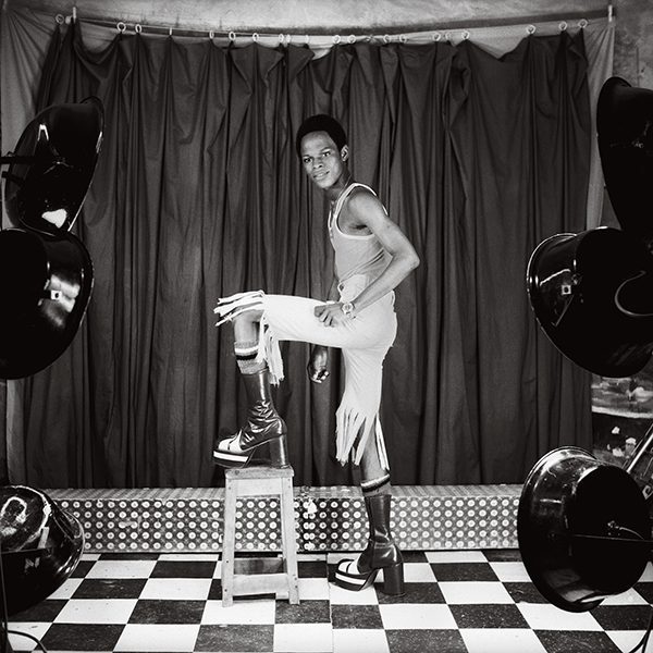 It all began with the high heels. In 1976, as a precocious teenager, Samuel Fosso traveled from Bangui, Central African Republic, where he operated his own photography business called Studio Photo Gentil, to visit his family in Nigeria. There he discovered a pair of platform boots similar to those worn by the popular Nigerian highlife musician Prince Nico Mbarga on the cover of his record albums. Fosso’s grandmother agreed to buy him the boots, and upon returning to Bangui he completed the look, ordering a pair of bell-bottoms from a local tailor. “I put on my new outfit and went out. In the street, I ran into a priest who said, ‘You look handsome. You look like an astronaut. Do you want to reach heaven?’ And I answered, ‘Yes!’”