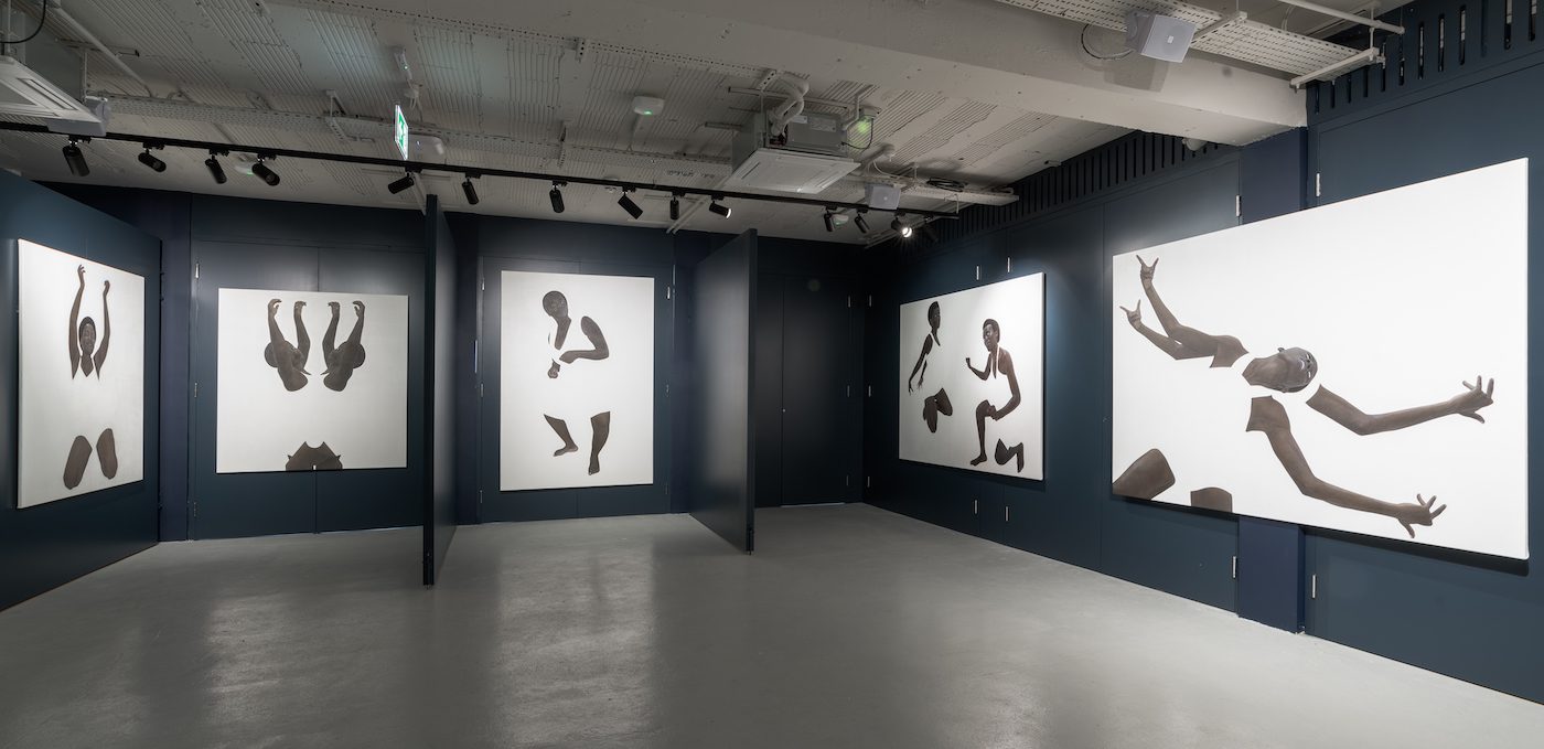 Installation view of Sungi Mlengeya’s opening exhibition « [Un]Choreographed » at The Africa Centre in London. Photo: Nigel R Glasgow