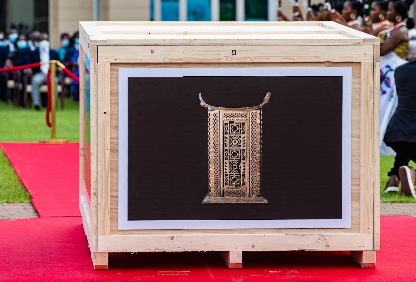 C’est de la poudre aux yeux, wrote the lawyer Roland Adjovi in a 2021 article, just a month before the return of the royal objects: flattering at its face but in reality a deception – the French equivalent of smoke and mirrors. The first major flaw of the process, he pointed out, was that France wanted to dictate the terms of the restitution – a ludicrous result of years of colonialization: the normalization of terms that favor the plunderers. Anything taken by unfair means should be returned to those it was taken from, no questions asked. To paraphrase, Adjovi argued that the only adequate restitution would be the return to the status quo ante, a restitution in integrum: the return of all objects taken during the colonial period, between 1400 to 1960, through unfair sales contracts, seizures by foreign authorities, or theft (sometimes in the form of military expeditions).